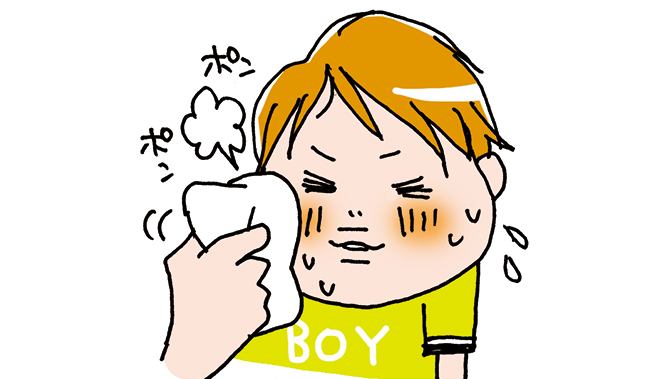 ガーゼや乾いた布は、子どものデリケートな肌を傷めてしまいます。汗を拭くときは肌触りのいいおしぼりやウェットティッシュを使うと◎です。
