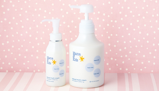 顔と同様、ボディもカサカサ状態!妊娠したら、ぜひ全身保湿ケアをする習慣をつけましょう。ボディケアにも低刺激&高保湿なアイテムがおすすめです。「ママ&キッズ ナチュラルマーククリーム」なら、高保湿なうえ妊娠線ケア成分たっぷり!肌のうるおいと弾力をキープしつつ、妊娠線もしっかり予防してくれます。妊娠線はおなか以外にもおしりや二の腕にもできるので、全身にたっぷり塗りましょう。