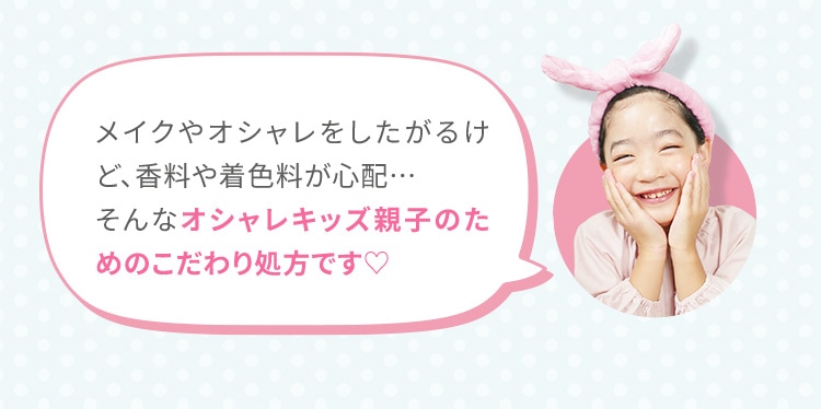 - 香料や着色料、アロマ成分やアルコール(エタノール)など、成長中の肌の刺激になりうる成分は徹底してカットしています。セラミドなどの肌本来の美肌成分をたっぷり配合し、ずっとゆらがないすこやかな肌を育みます。