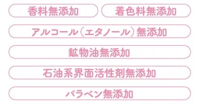 香料や着色料、植物アレルギーのもととなる成分、刺激となる防腐剤(パラベン)やアルコール(エタノール)などを取り除き、不純物も含まれるオーガニック成分は一切使用せず、高精製された成分のみを使用しています。