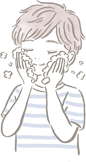 さらに大切なのが「すすぎ」。必ず流水を使い、フェイスラインや生えぎわまで丁寧に流して、洗い残しがないように注意しよう。洗ったあとの保湿もやさしくつけてね。