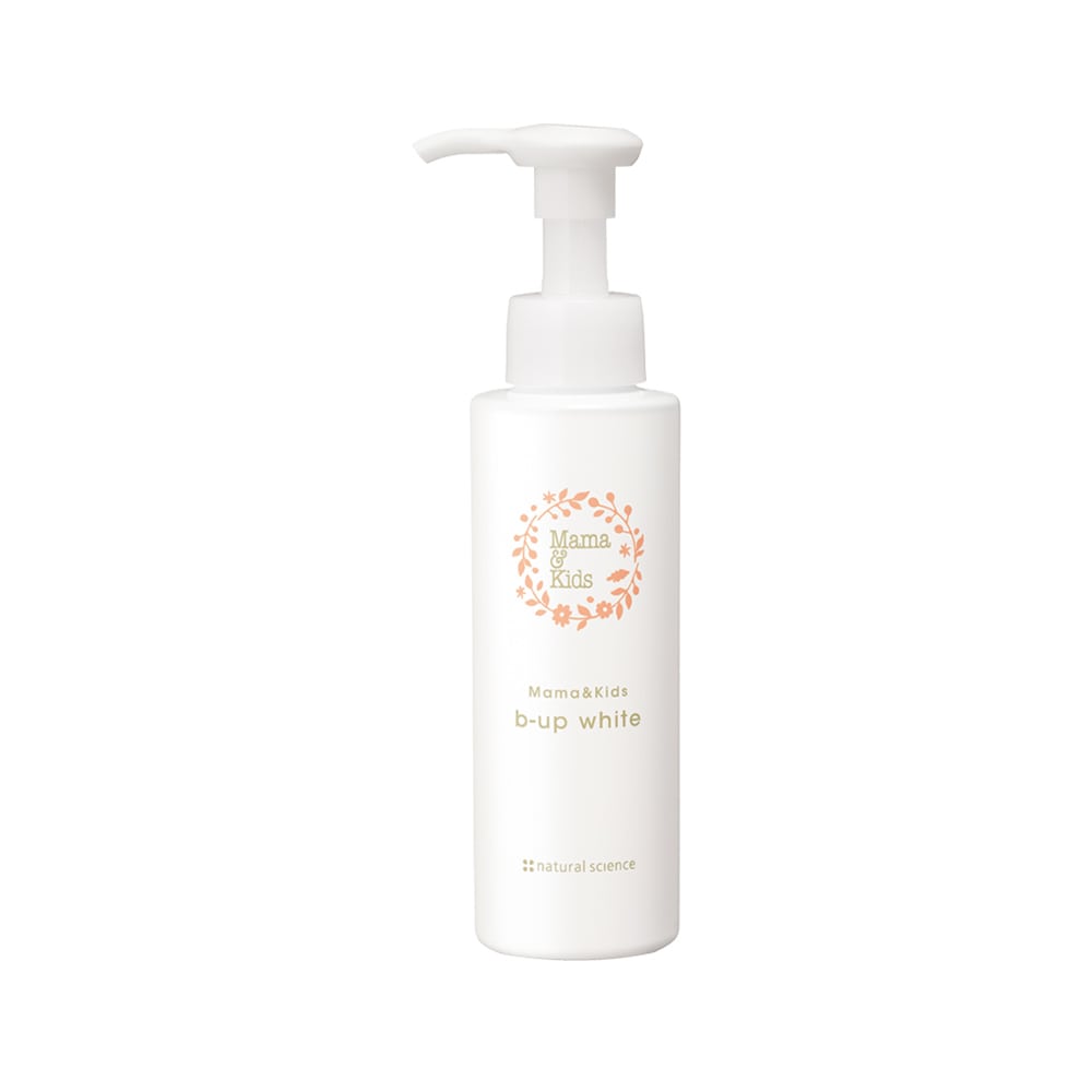 「ママ&キッズ ビーアップホワイト」はバストまわりのハリを高めます。うるおいと弾力を高めるのはもちろんですが、弾力ベールを肌の上につくることで、急激に重くなるバストを支えてくれるバストデコルテ専用乳液です。