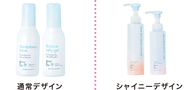 「ママ&キッズ 敏感バランスライン」は、ベタつくのに乾燥する思春期の肌にもおすすめです。特に思春期の方には、「ママ&キッズ 敏感バランスライン」の中身はそのままに、ゆらぎやすいティーンの肌と心を応援するスキンケアライン「シャイニーデザインボトル」がおすすめです。