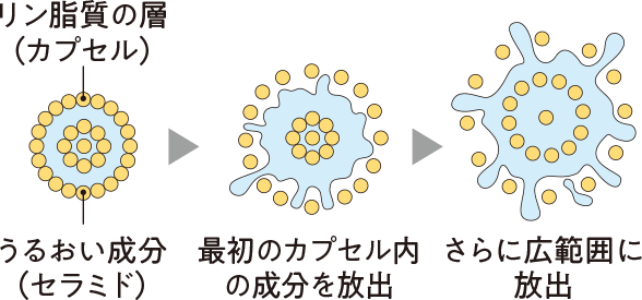 4種のカプセル化ヒト型セラミドが、ゆらぎがちな肌のバリア機能をサポート。