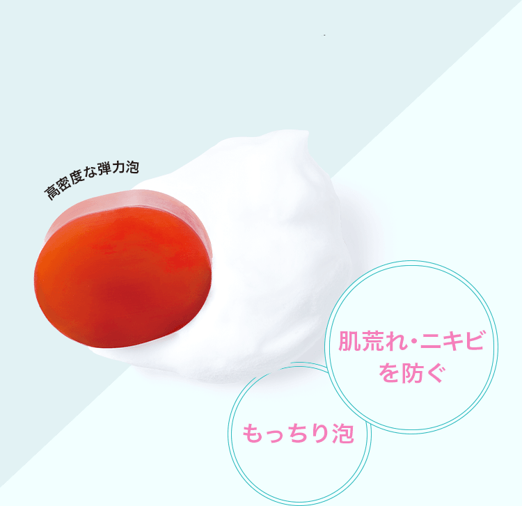 ファンの声をご紹介:ネットで泡立てると、弾力のあるもっちりとした泡が出来上がります。洗い上がりはさっぱりしているのに、きしみ感はありません。