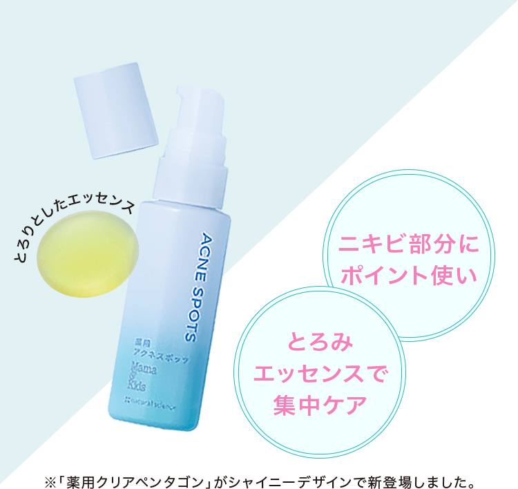 • ニキビが気になる方は、スキンケアの最後に「薬用アクネスポッツ」でスポッツケアをするのがおすすめです。