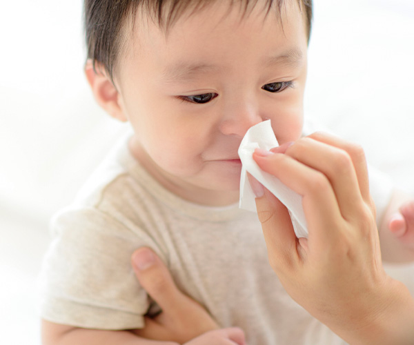 ティッシュがおすすめ!乾いたティッシュだけでは鼻が乾燥しヒリヒリ赤くなることも。鼻をかむときはクリームやミルクをつけたティッシュでかむのがおすすめです。