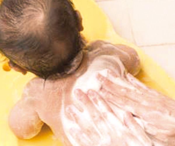 やさしく洗いましょうナイロン製のタオルやガーゼを使って体を強く洗うことは肌に刺激を与え、肌トラブルの原因に。ゴシゴシこすらず、泡を転がすように洗って。