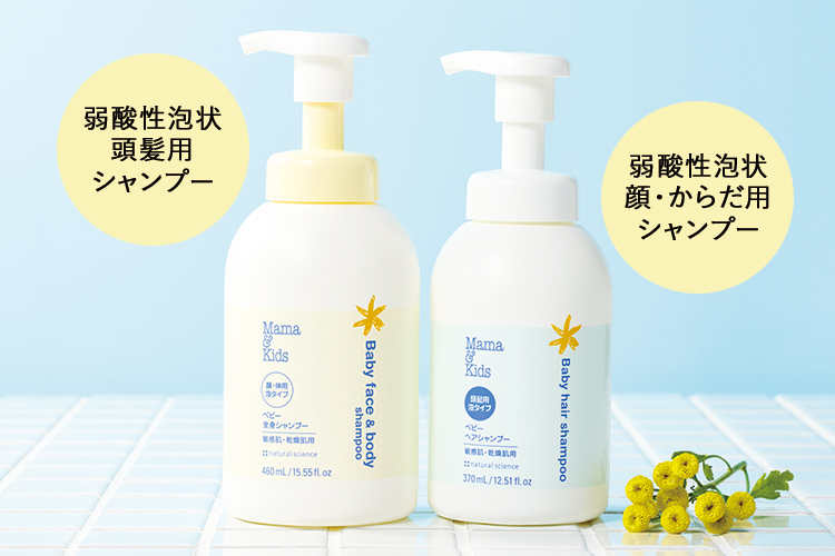 肌にやさしい弱酸性アミノ酸系洗浄料。バリア機能が未熟なベビーの肌をしっとり洗い上げます。