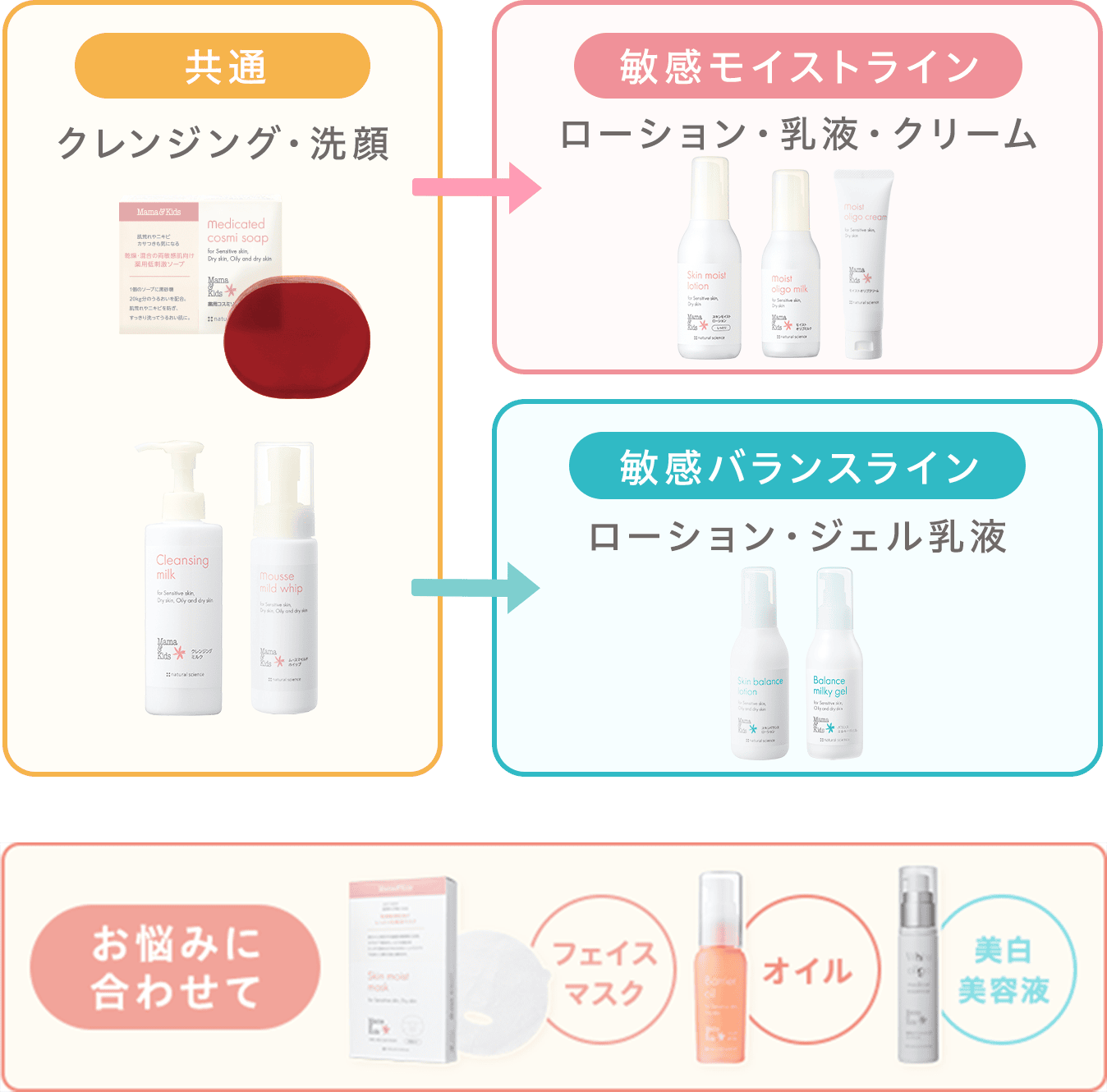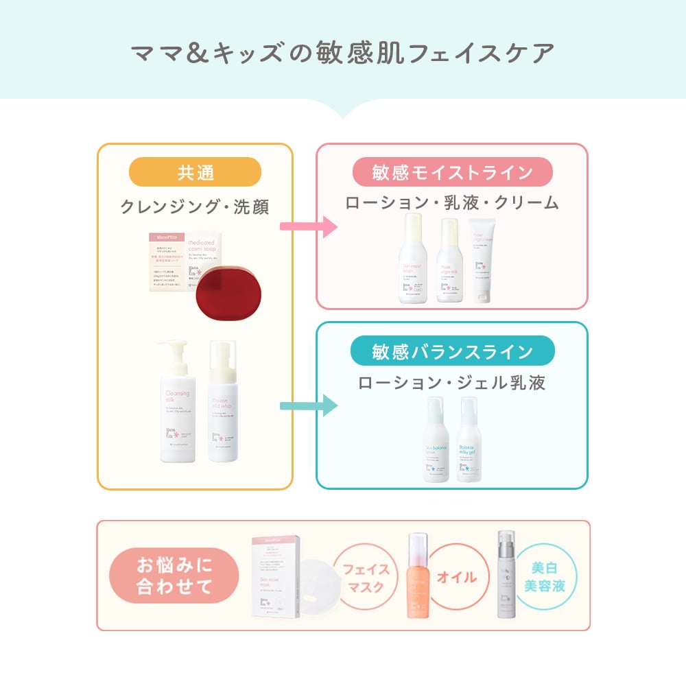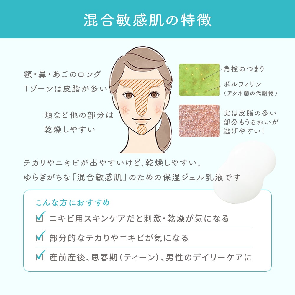 ベタつき・毛穴や、乾燥も気になる混合敏感肌。産前産後のデリケートな女性の肌はもちろん、思春期や男性の肌にもおすすめです。
