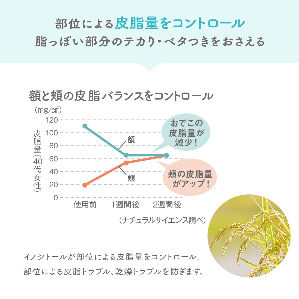イノシトールが部位による皮脂量をコントロール。部位による皮脂トラブル、乾燥トラブルを防ぎます。