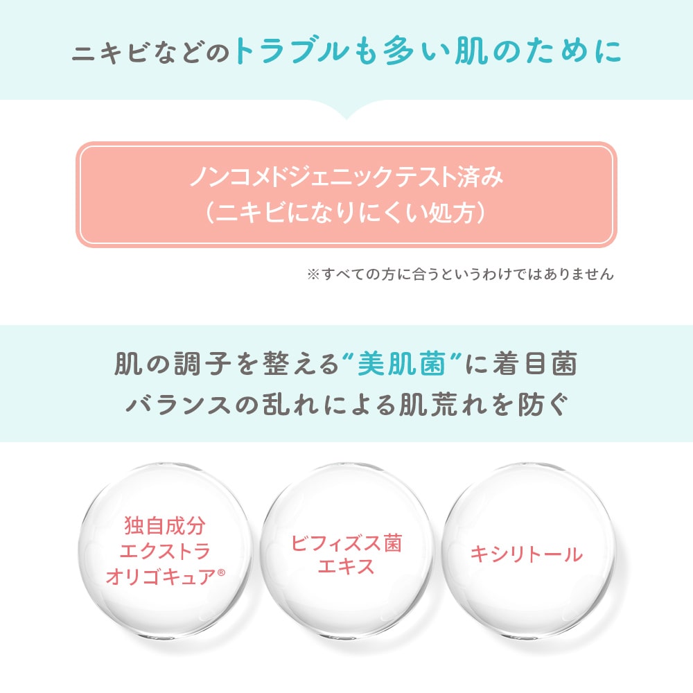 水分と油分のバランスが崩れて敏感になった肌をすこやかに整え、肌荒れを防ぎます。
