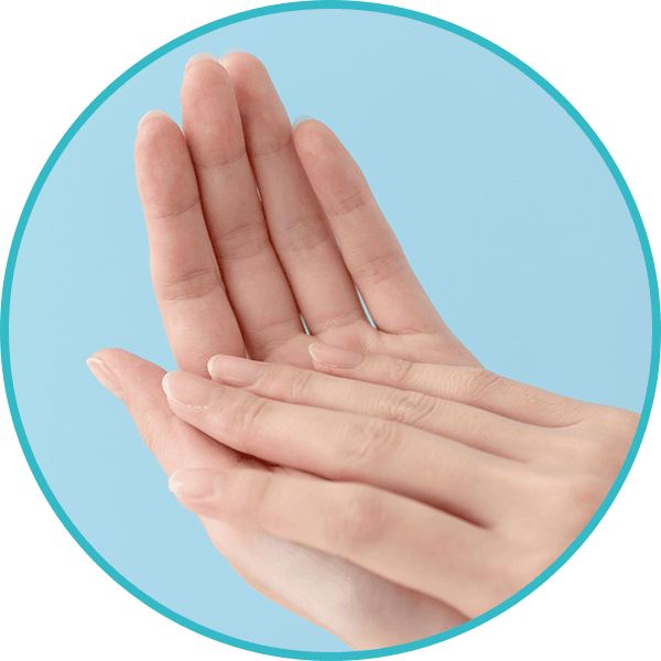 両手を合わせて温めます。人肌のぬくもりでジェルの感触が柔らかさを増し、肌なじみもさらに高まります。